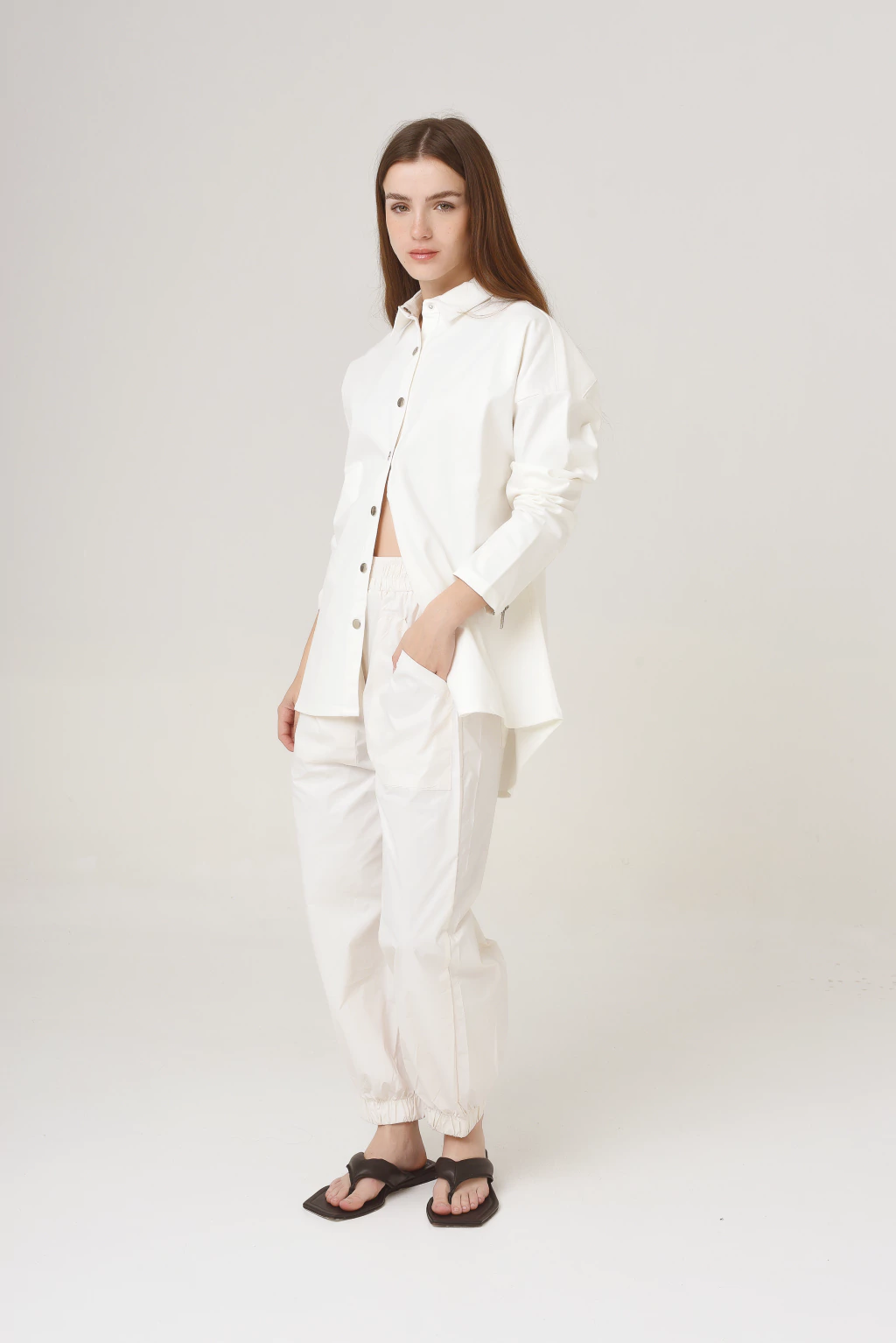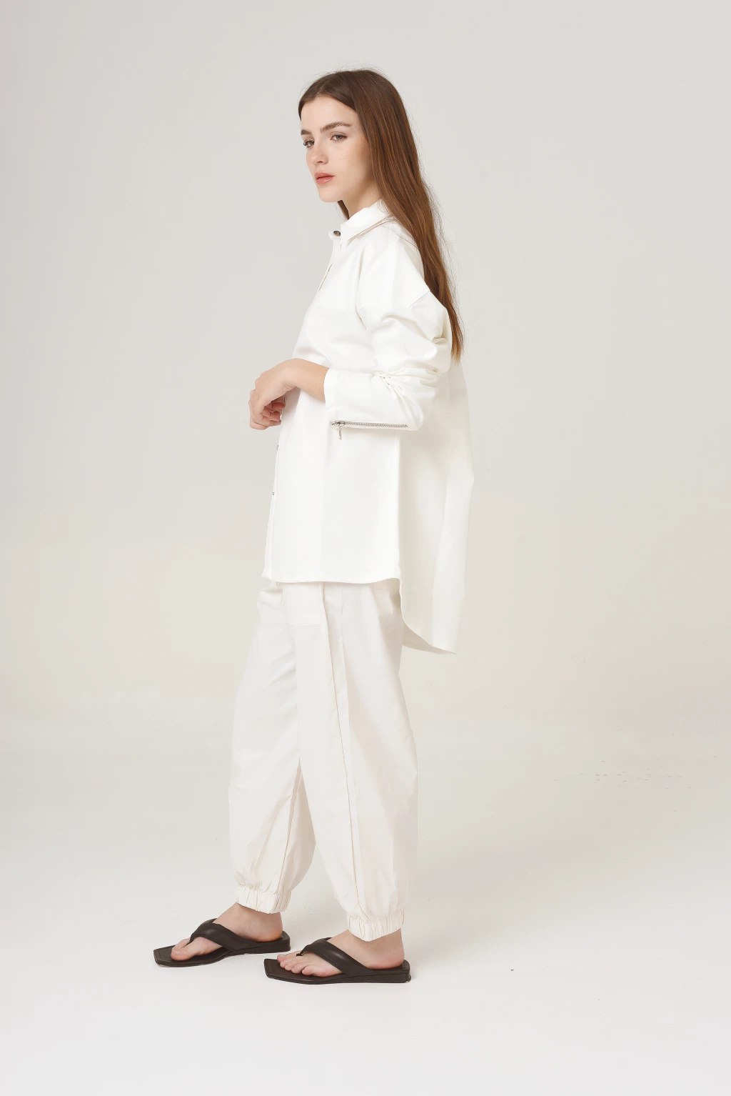 Este pantalón tipo cargo de tiro medio/bajo está diseñado para acompañar el movimiento con comodidad y estilo. Su cintura y tobillos elásticos aseguran un calce flexible, mientras que los bolsillos laterales y traseros, suman practicidad sin perder equilibrio visual.
